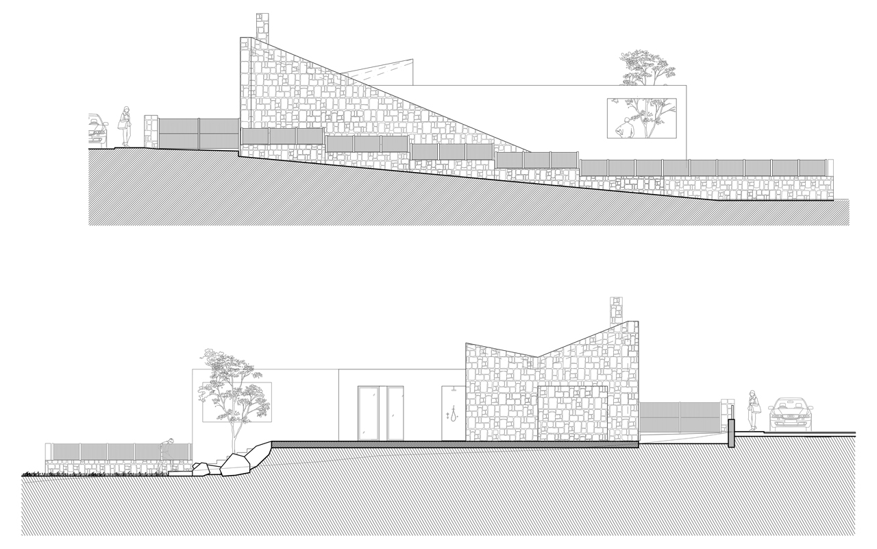 The design was based on two principles: to create something beautiful and distinctive from its surroundings, yet attaining value for money. A key challenge for the interior architecture of this house was to harmonize the potential for expansiveness with the programmatic requirements of the brief. The layout falls into two main territories: roughly three quarters of the floor incorporates a master bedroom, bathroom, compact kitchen, dining and living with the remainder of the plan left open as a bbq terrace that can be later attached to the house with various possibilities. The main feature of the construction is the stone wall with stone brought from local manufacturers. Roof photovoltaic panels will be installed as well as water collector tanks.